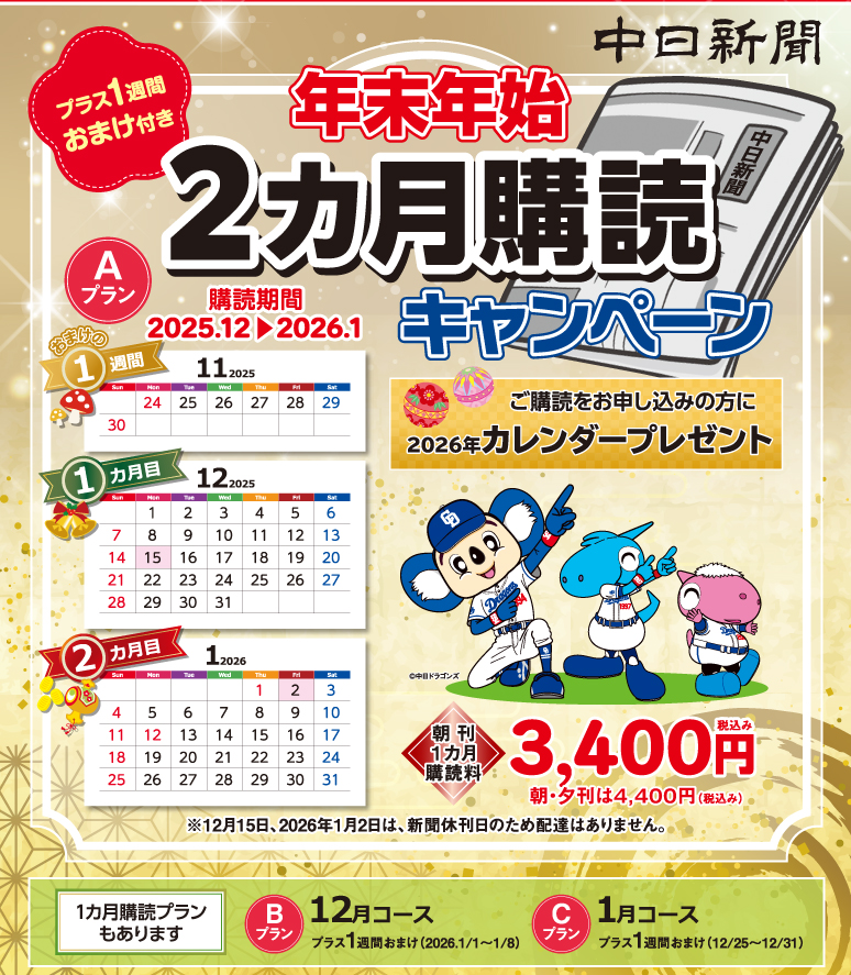 年末年始は中日新聞を読もう!お得な年末年始購読キャンペーン開催中です!
