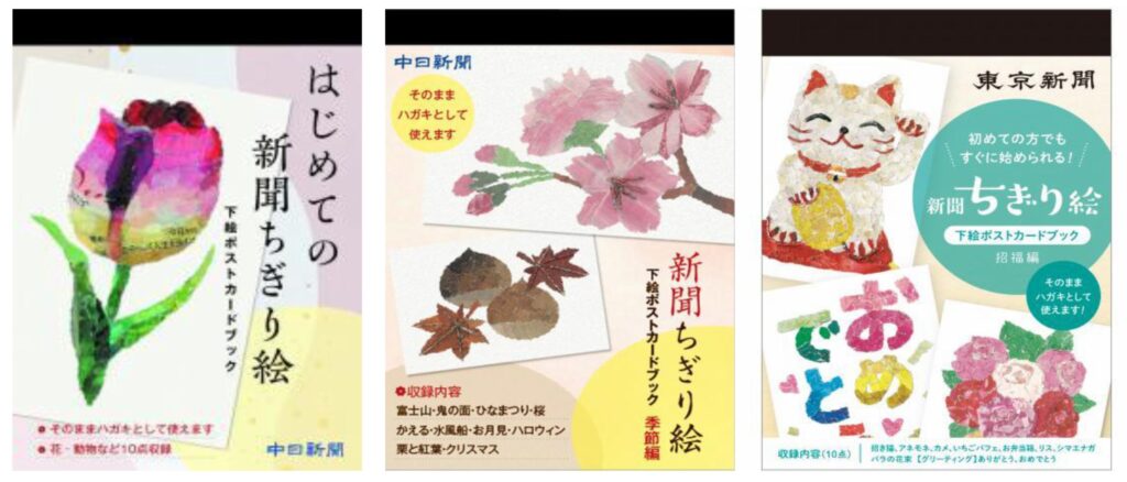 ☆すぐに新聞ちぎり絵を始められる、下絵ポストカード3種類発売中です!
